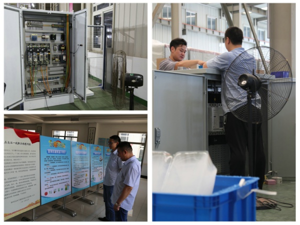 面對高溫酷暑,公司一是加大防暑宣傳力度,通過宣傳展板、微信公眾號等形式,向職工宣傳防暑降溫和勞動安全防護的有關知識,加強對員工自我防護意識的教育;二是精心做好后勤保障,公司工會在酷暑到來前,為生產和售后服務一線的各班組配置醫(yī)藥箱、配齊防暑降溫藥品,供應清涼解暑的綠豆湯和礦泉水,同時在常規(guī)降溫設施基礎上增加冰塊降溫,努力為職工創(chuàng)造良好的工作環(huán)境。三是合理安排作業(yè)時間,通過采取“早、晚工作,增加中午休息”的工作方式,避開高溫時間段作業(yè),防止高溫中暑,提高工作效率;四是加強生產設備維護,組織專業(yè)人員加大對高溫下的生產設備進行實時監(jiān)控,防止過熱運行,同時對廠區(qū)內空調、電風扇等防暑降溫設備進行統(tǒng)一檢修,確保防暑降溫設施的正常運行。
