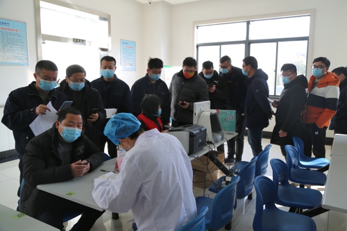 上午八點(diǎn)半,臨時(shí)體檢臺(tái)前等待獻(xiàn)血的員工們?cè)缫炎杂X排起隊(duì),填表、體檢、上車獻(xiàn)血,一切正有條不紊地進(jìn)行,愛心獻(xiàn)血車內(nèi)座無虛席。